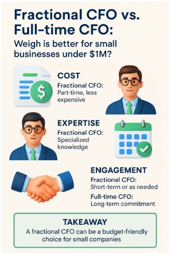 Fractional CFOs provide affordable strategic finance support for businesses under $1M.